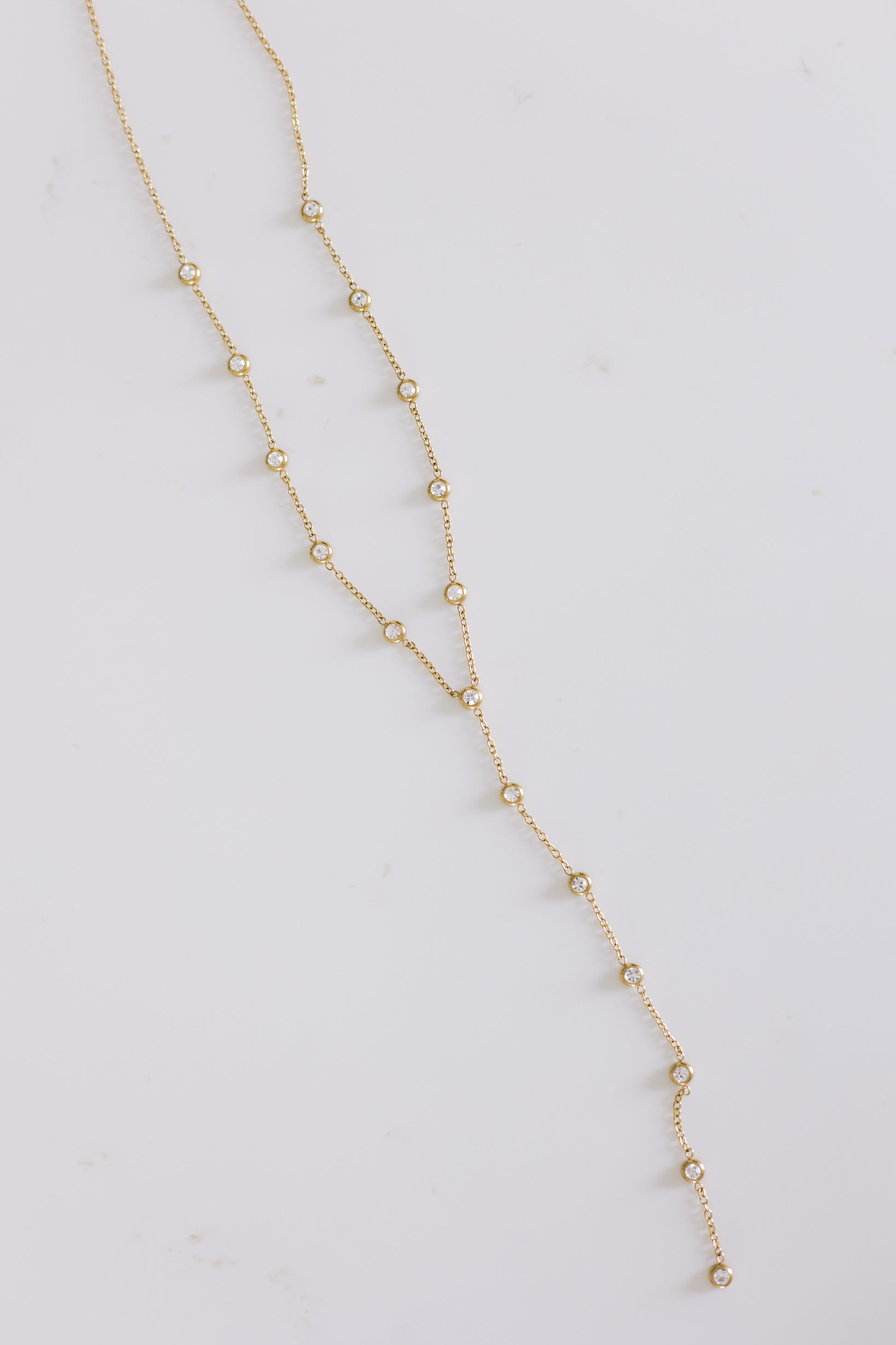 Minimal, delicate, and designed to shine. The Lumi Drop Necklace features a dainty gold chain with a sleek vertical drop — the perfect piece to layer or wear on its own for an effortless touch of elegance.