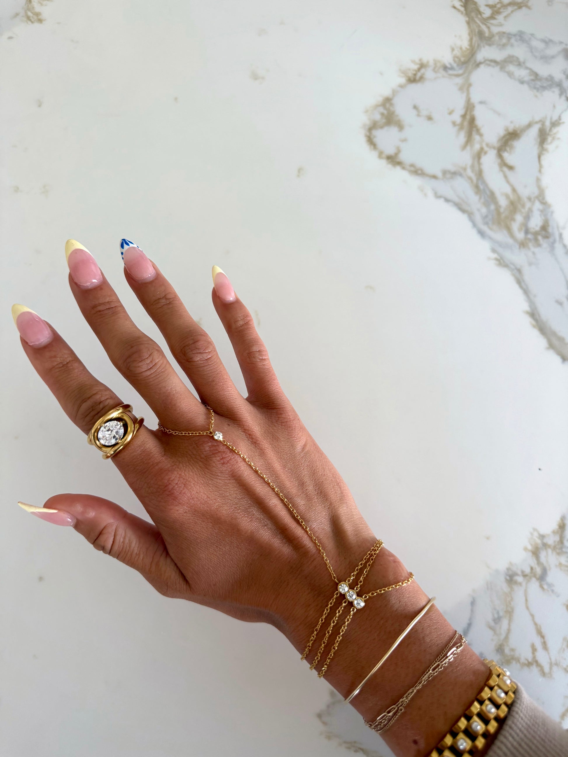Say hello to your new signature sparkle. The Gigi Ring features a gold band crowned with a dainty diamond-like center stone — simple, elegant, and full of charm.