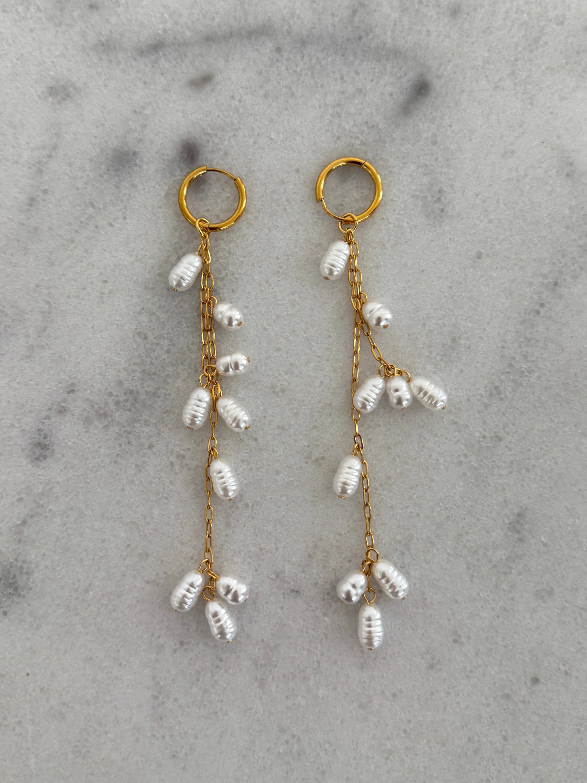 A dreamy blend of gold and pearls, the Solara Earrings add a touch of shine to any look. With their delicate dangle and lightweight feel, they’re perfect for dressing up or wearing every day.
