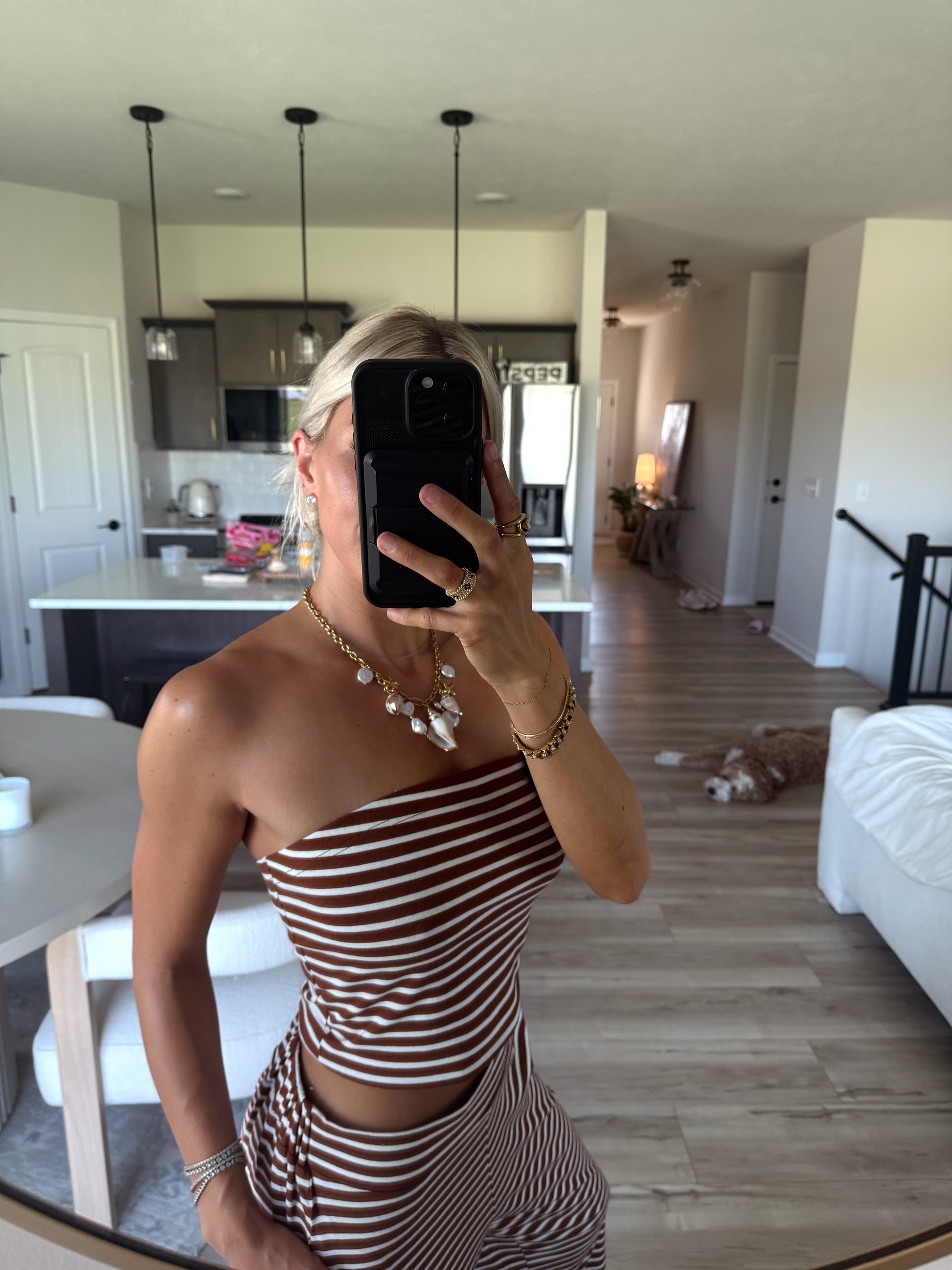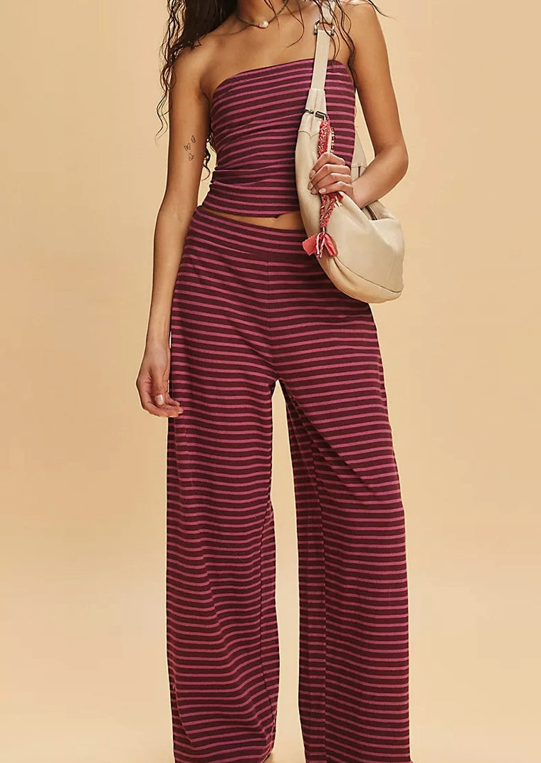 Our most-loved, best-selling set—designed to flatter, move, and turn heads. With its strapless top and flowy striped pants, the Tide Set blends effortless comfort with timeless coastal style. A true Haven favorite.